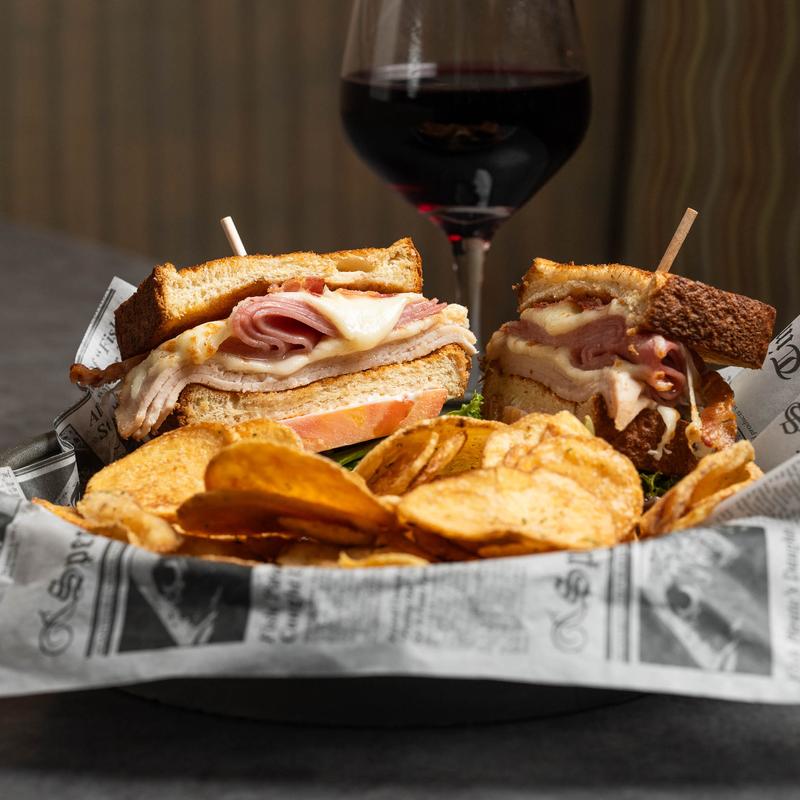 Ham, turkey, bacon, lettuce, tomato, mayo on Texas toast